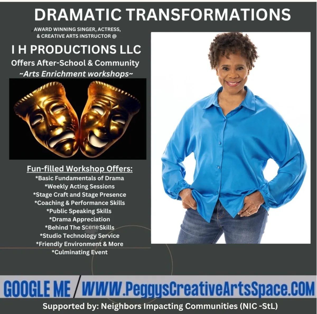 Peggy's Creative Arts Space is a place where people of all ages can come to learn creative arts, while celebrating the richness of African American culture. Our award-winning singer, actress, and performing arts educator Peggy Neely-Harris has created a safe space for people of all backgrounds to explore their creativity. From music and dance to theater and visual art, we offer classes and workshops that will unleash your inner artist. So come on down and join the fun!